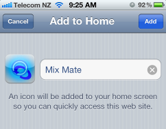 3. Tap ’Add’ to save. The Mate will add an icon to your Home Screen. |
