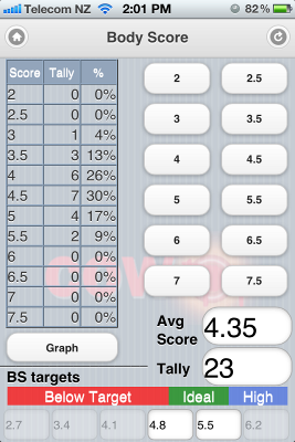 Body Score. Set your own targets then score your cows body condition with one button press/cow. Watch the score change as you go... |