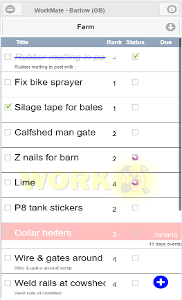 WorkMate is a handy app for communicating with the team. The boss puts a job into WorkMate, ranks the job for priority, sets a due date. Staff then update the jobs status depending on how much they’ve done. Overdue jobs are highlighted in red. Completed jobs are crossed out. Have as many lists as you want and everyone in the team has the same thing, up to date and clear. Handy mate! |