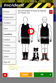 Incident reports are super easy to record. Eg This screen shows where on the body the injury was. |