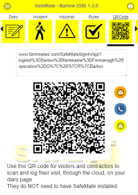 Put this QR code at your farm entrance and visitors can sign in, view the hazards you select for them to see all without the need for them to install SafeMate |